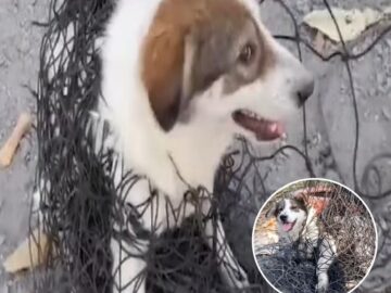 The woman was deeply moved by the sight of the puppy desperately needing help. Sensing her approach, he was initially terrified, dragging himself to a corner and trembling in fear. Upon reaching him, she noticed his eyes appeared lifeless, raising concerns about his health.